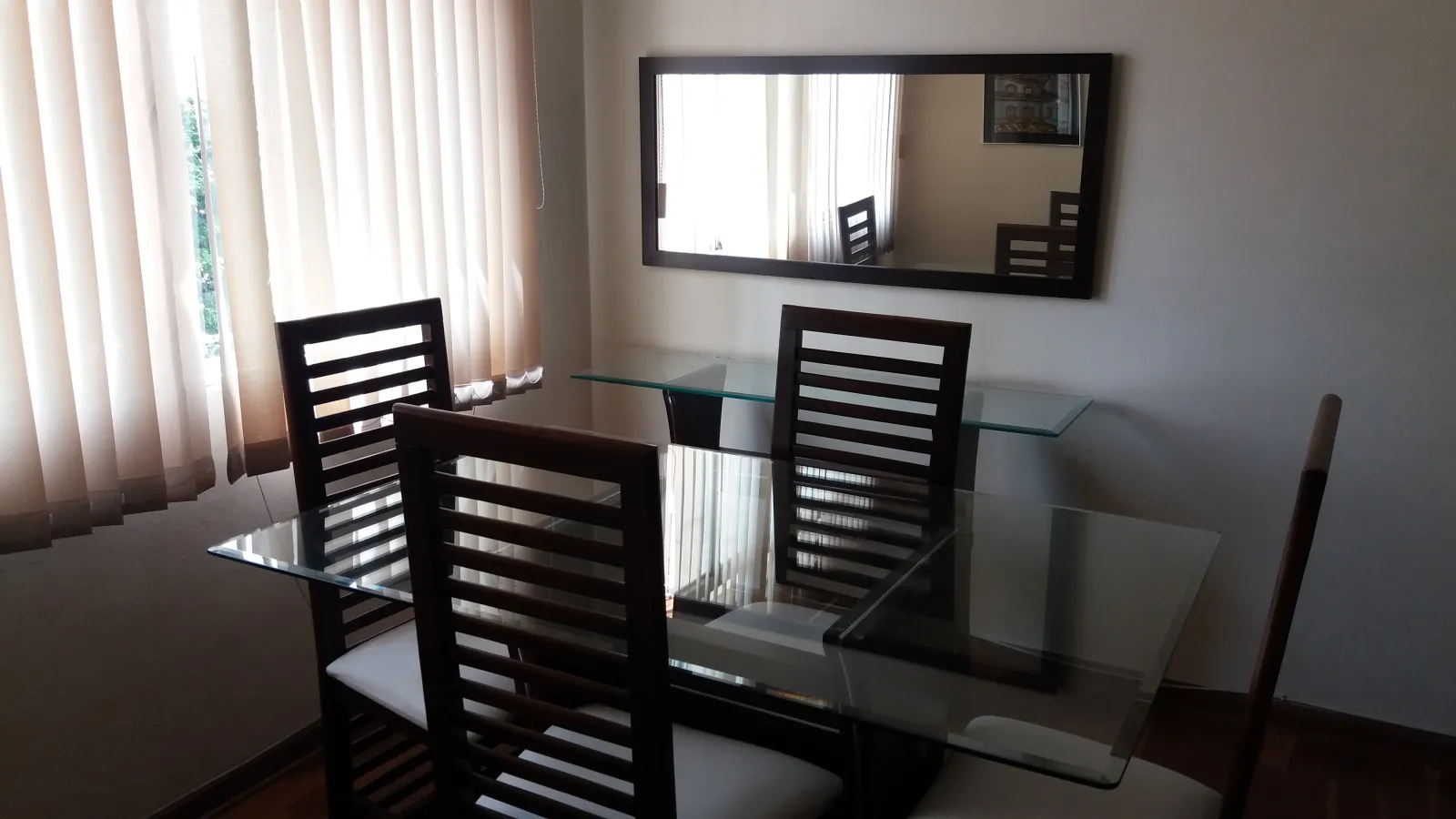 Possui uma ampla sala dividida em dois ambientes, garagem privativa, três dormitórios, banheiro e área de serviço.