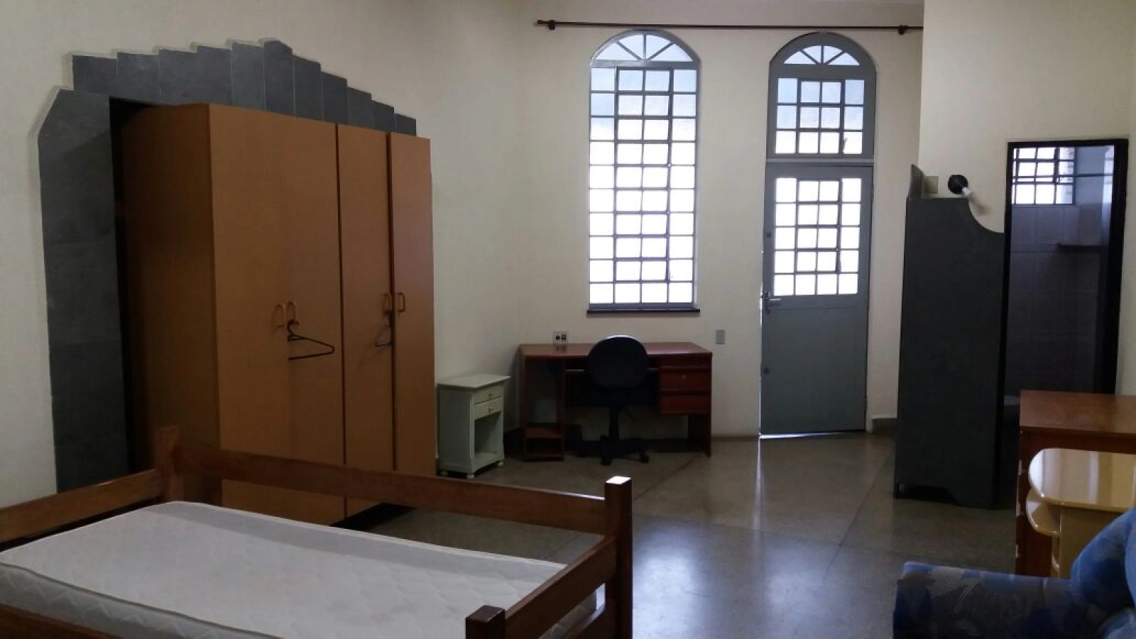 Armário, estante, sofás e Bi-cama individuais, colchão, mesas e cadeiras, instalações de internet de alta velocidade (Fibra Ótica - WI-FII) e rede para TV - HDTV - Digital.